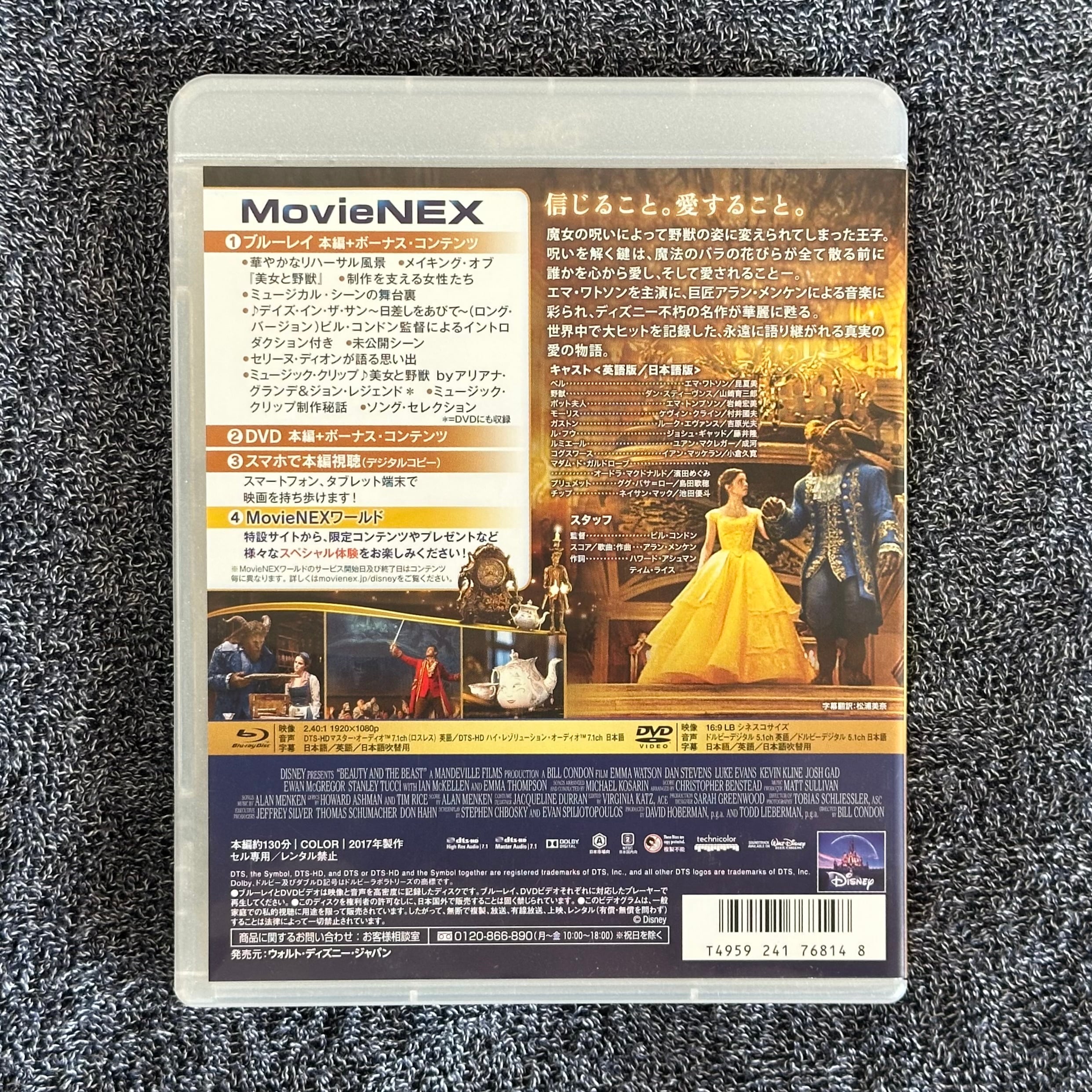 ディズニーのファンタジー映画『美女と野獣』のBlu-ray、MovieNEX版。