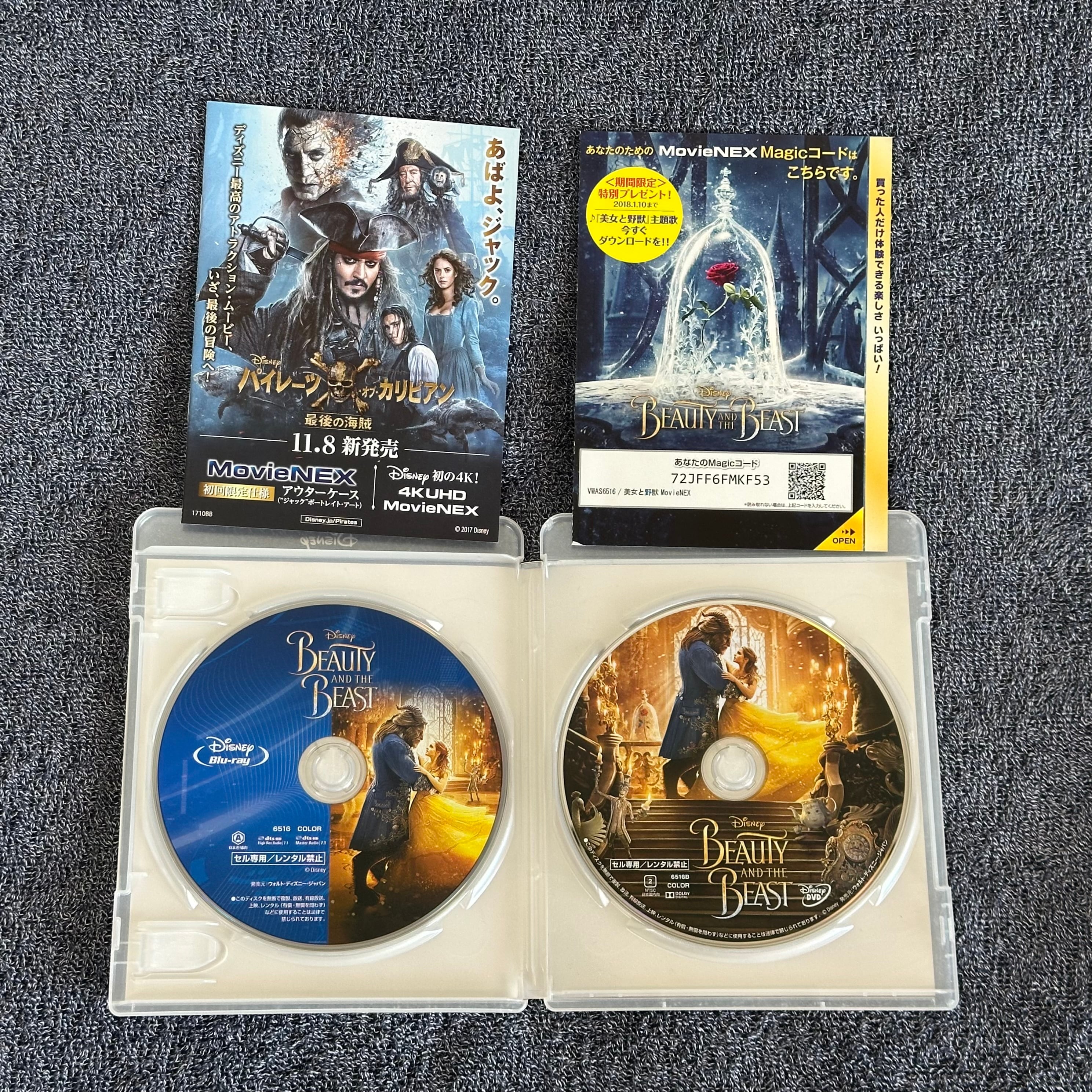 Disney映画「美女と野獣」のMovieNEX版、特典映像付きのBlu-rayとDVDのセットです。